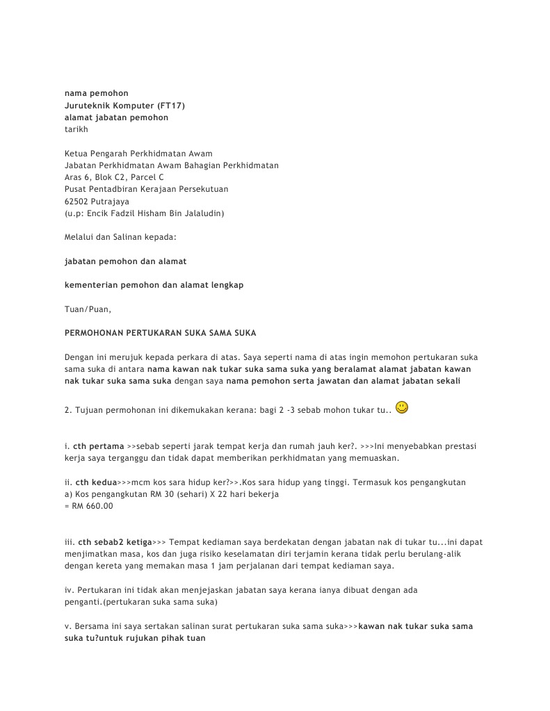 Contoh Surat Permohonan Pertukaran Pdf